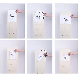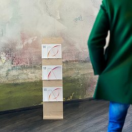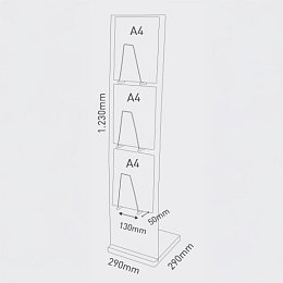 Volně stojící stojan na prospekty se 3 přihrádkami na A4 a A5 ve formátu na výšku a na šířku.